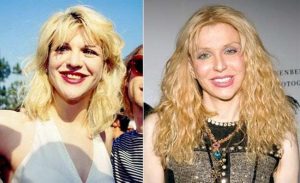 Courtney Love tem alguns dentes com faceta de porcelana e é bem visível.
