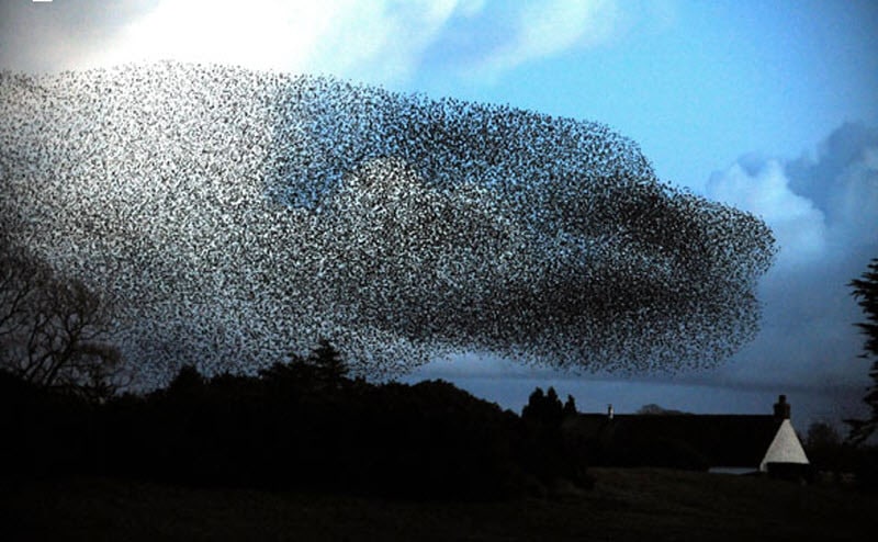 É como se chama o fenômeno incrível da migração de estorninhos europeus, em que milhões de pássaros, no final de março, voam para a península escandinava da Europa através da Dinamarca – e eles voltam apenas no meio do outono. São tantos pássaros no céu, que algumas cidades costumam ficar escuras.