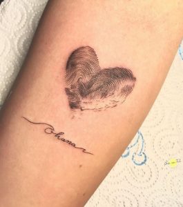 Este tipo de tatuaje tiene un significado parecido al de las huellas de los bebés, sin embargo, el significado es un poco más amplio debido a que estas marcas pueden pertenecer a otras personas especiales como hermanos, padres o abuelos. Además, al unirlas y formar un corazón, se le da una connotación de afecto al tatuaje.