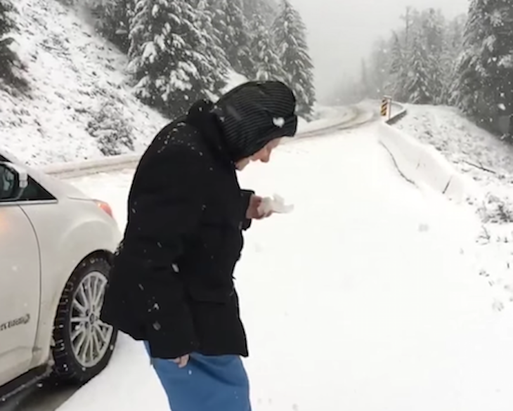 Quando Armand estava passando por uma estrada coberta por belos flocos de neve frescos, notou o sorriso sereno no rosto da mãe, que o fez parar o carro para deixá-la desfrutar da neve.
