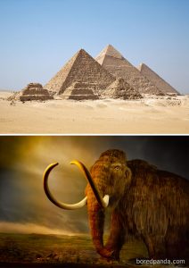 C.. Essas criaturas gigantes ainda eram encontradas em uma ilha na costa leste da Rússia na época. Enquanto isso, a mais antiga das “Grandes Pirâmides” no Egito, a Pirâmide de Djoser foi construída entre 2630 aC-2611 a.C., o que significa que enquanto o homem estava ocupado construindo algumas das estruturas mais incríveis já feitas, os mamutes ainda viviam pela Terra.