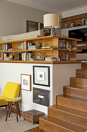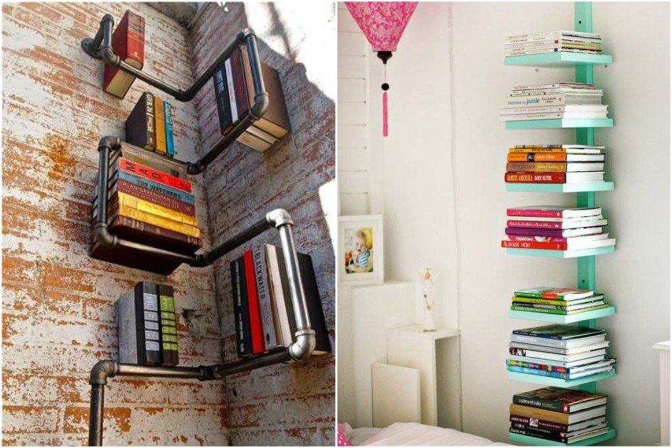 Se você não mora em um espaço muito grande, aproveite a altura da sua morada! Por exemplo, se você mora em um lugar que possui escadas, utilize um dos lados dos degraus para fazer uma estante. Se você possui canos, vigas e paredes altas cujo espaço não está sendo aproveitado devidamente, instale prateleiras e coloque seus livros ali! :)