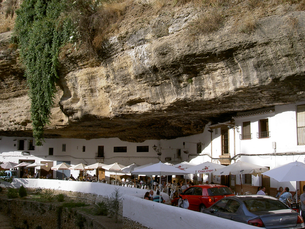 Conhecida como “cidade das pedras”, Setenil de las Bodegas chama a atenção pelo seu traçado urbano bem peculiar (e lindíssimo). Construída entre as rochas e em pleno declive, a cidade possui diferentes níveis. No mais alto, está o castelo. Ao andar pelas ruas, dá para ver as gigantescas rochas percorrendo as fachadas das casas e dos comércios. Impossível não se impressionar.