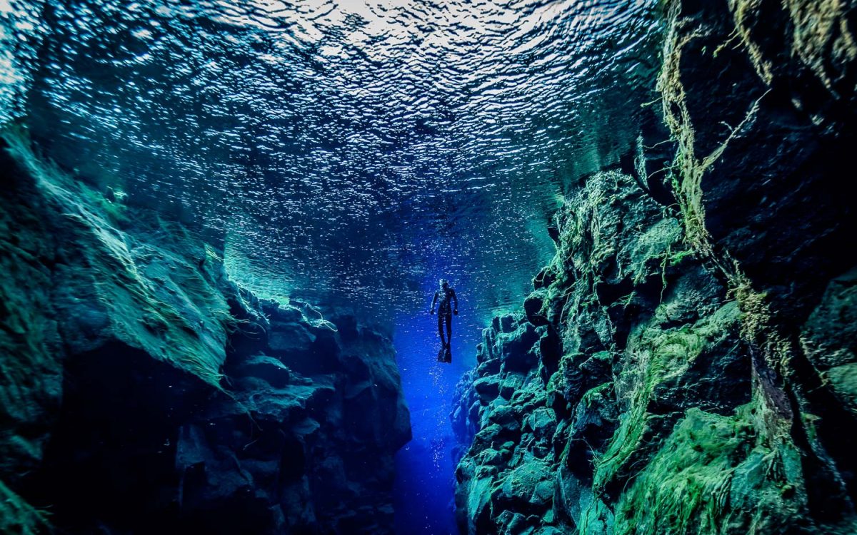 Um paraíso para os amantes do mergulho, a Fissura de Silfra possui mais de 100 metros de visibilidade e é, literalmente, entre dois continentes. Situada no Parque Thingvellir, a fenda fica entre duas placas tectônicas e aumenta cerca de 2,5cm por ano. O visual é simplesmente deslumbrante.