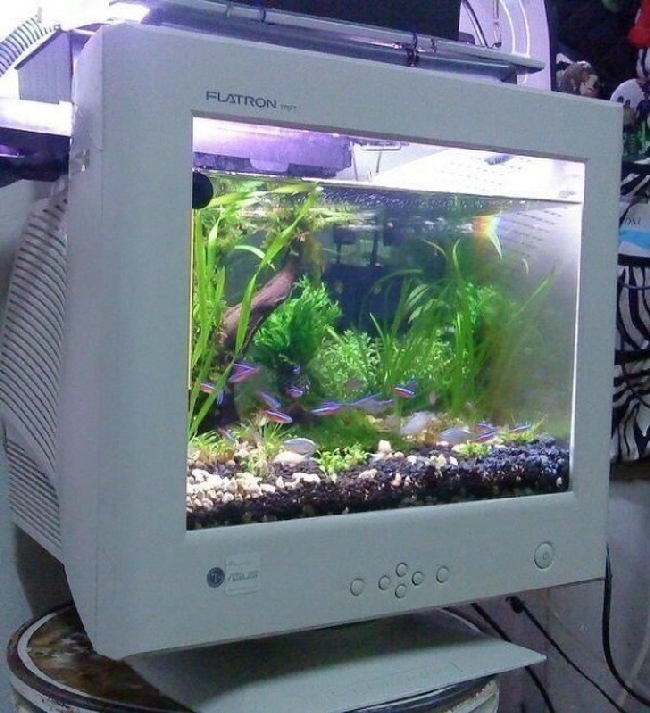 12 – Lixo eletrônico?! Com criatividade, é possível transformá-lo em um aquário