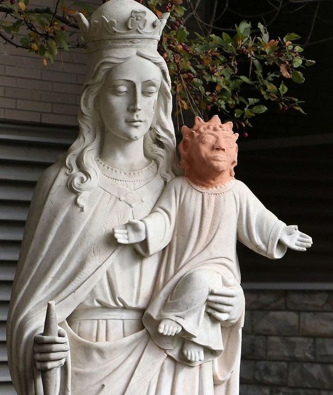 3 – Alguém sem muitos dons para a restauração fez transformou a cabeça do Menino Jesus em qualquer coisa menos o Menino Jesus