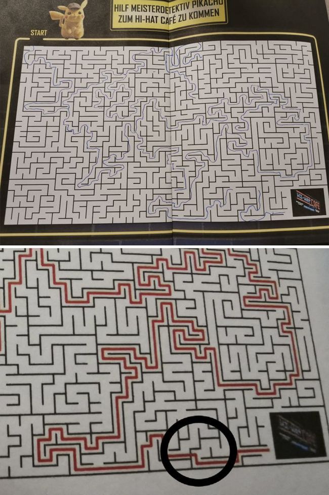 4 – Após muito tempo tentando resolver este labirinto, eles resolveram olhar a resposta e qual não foi a surpresa ao constatar que o designer claramente “roubou” na hora de dar a resposta
