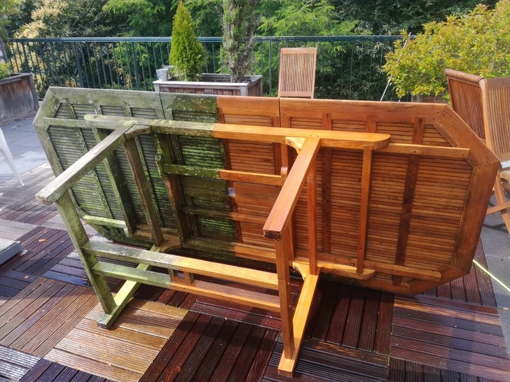 Esto es lo que le pasa al banco de jardín si no lo lavas durante 16 años