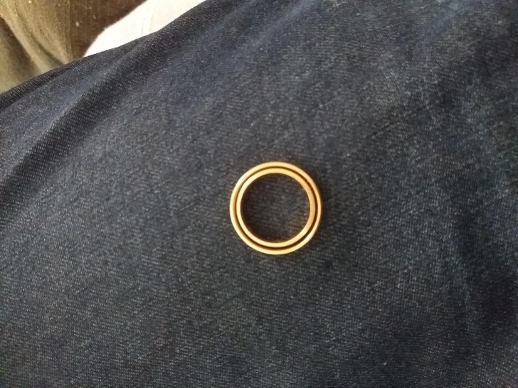 17. El anillo de bodas de ella encaja perfectamente dentro del anillo de su esposo