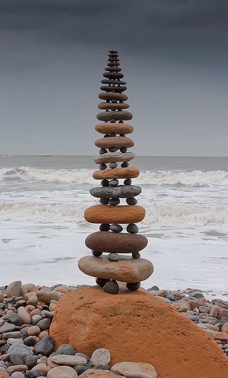 19. Una torre de rocas balanceadas sobre otras más pequeñas, creando la ilusión de una escalera