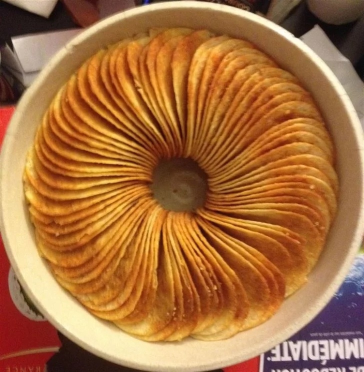 2. Las papas pringles están tan perfectamente colocadas en un tazón que parecen un pastel de flores redondas