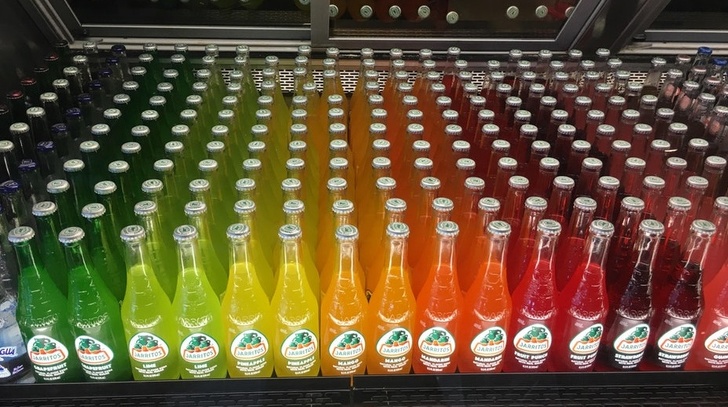 21. Estas botellas de refrescos colocadas en el refrigerador según su color