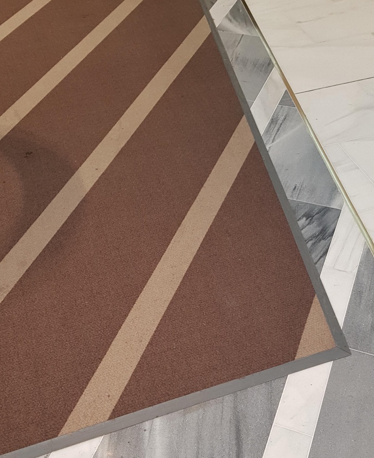 26. La alfombra que se alinea perfectamente con el piso de mármol