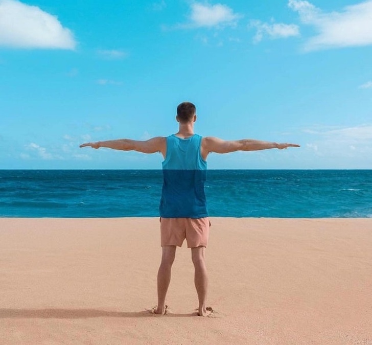 30. ¡La combinación de colores entre su atuendo y la playa es impecable!