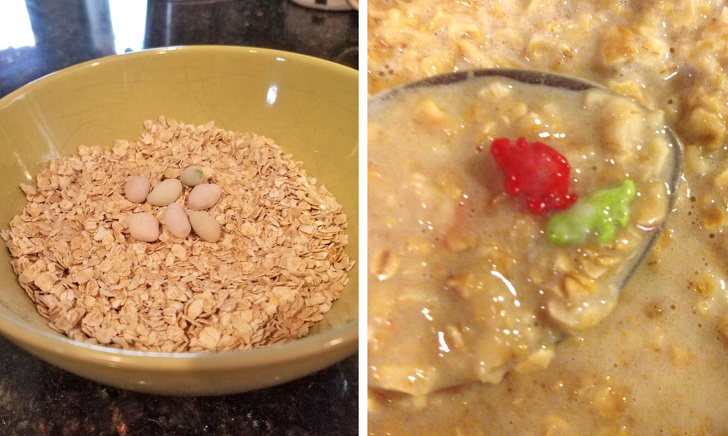 12. Esta avena contiene huevos de los que salen unos dinosaurios cuando se cocina. Creo que esta es la única manera de hacer que un niño coma eso
