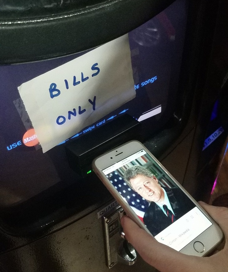 Se aceptan solo billetes (alusión a Bill Clinton).