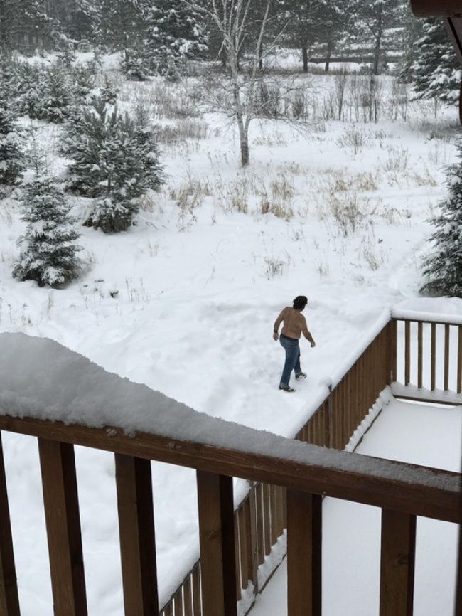 12 – “Meu pai reservou uma viagem ao Canadá depois de nos dizer que ele estava cansado do calor da Flórida. Hoje olhei para fora da janela da minha varanda para vê-lo caminhando assim”