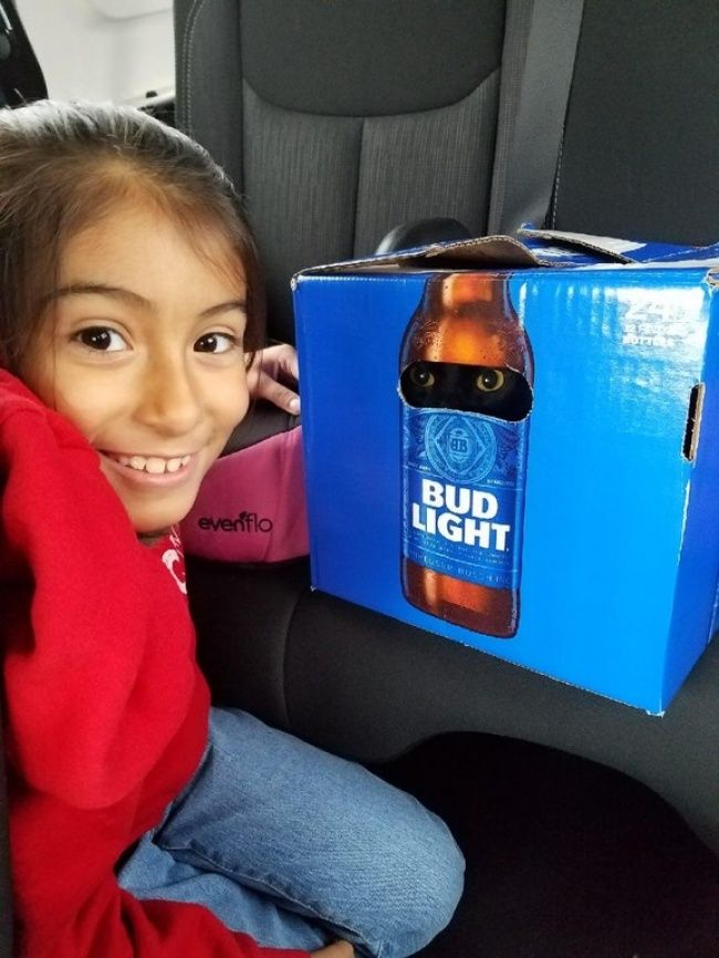 3 – Ela não tinha uma caixa de transporte para gatos, então resolveu improvisar