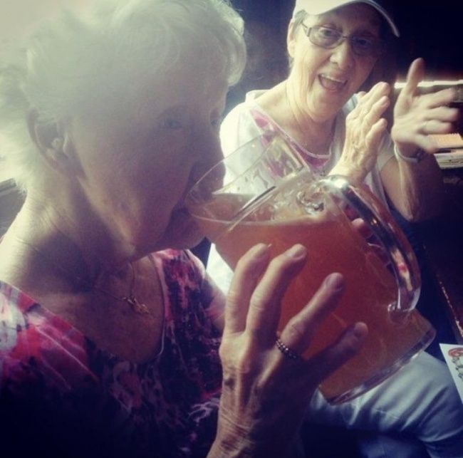 4 – Essa vovó experimentando álcool pela primeira vez, enquanto a outra vó bate palma