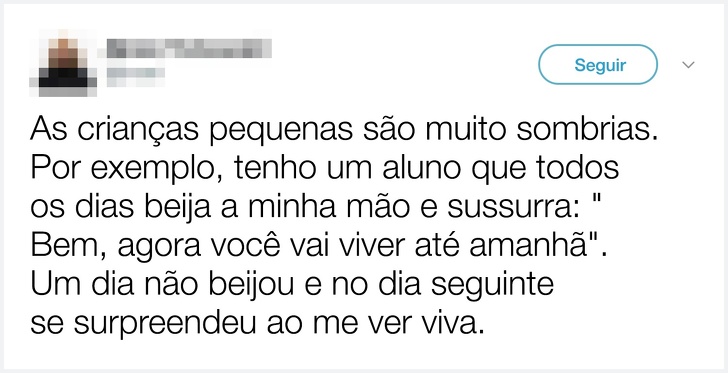 “Trabalho num acampamento de férias. Recentemente, uma menina de 8 anos disse que tinha desenhado sua irmã mais velha”