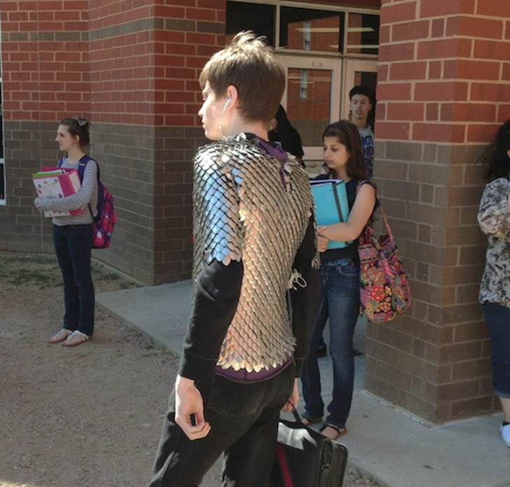“Um garoto da minha escola fez uma cota de malha e não quer tirá-la de jeito nenhum. Nem a pedido dos professores”