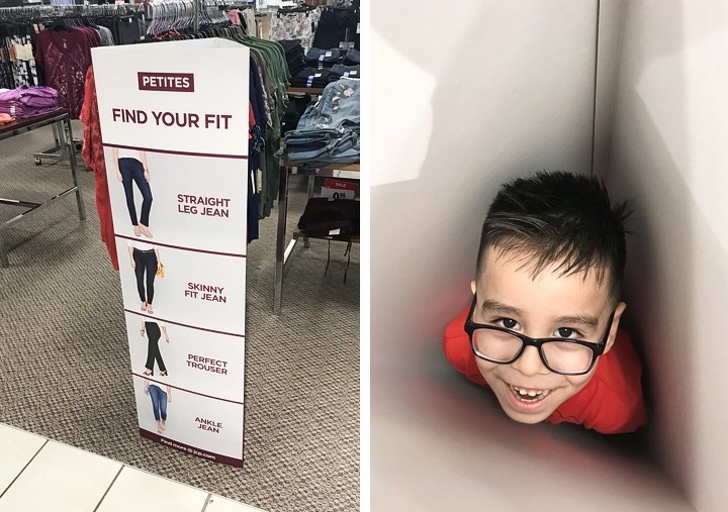 “Eu estava brincando de esconde-esconde com meu irmão em uma loja. Realmente não conseguia encontrá-lo, até que ouvi um espirro vindo de dentro da placa”