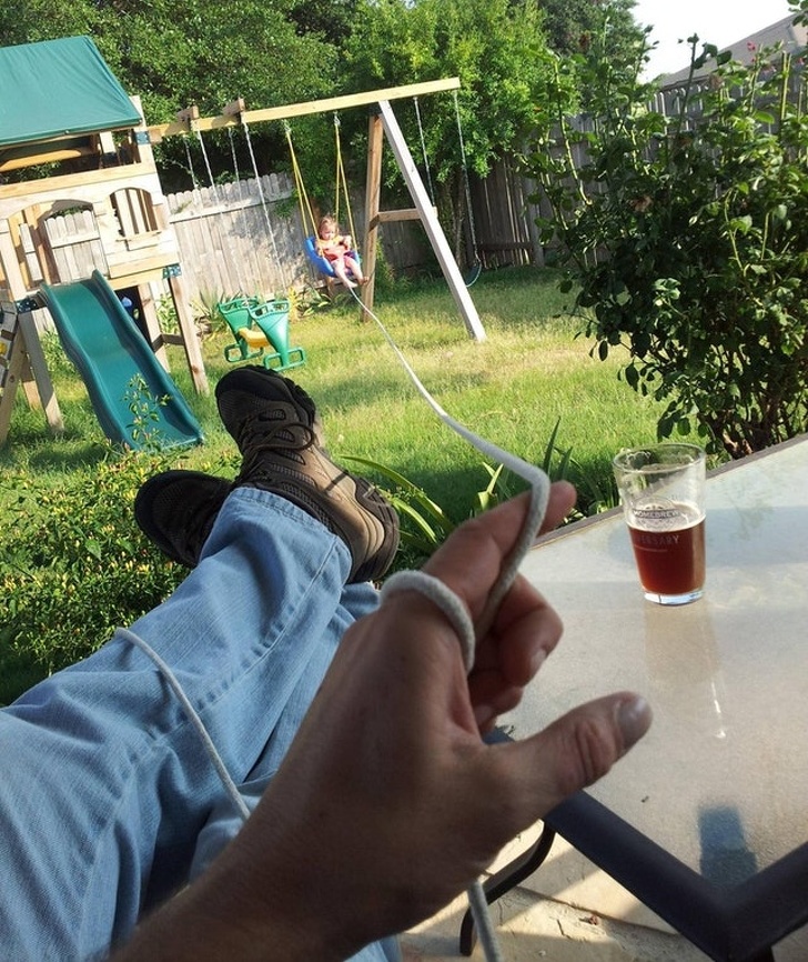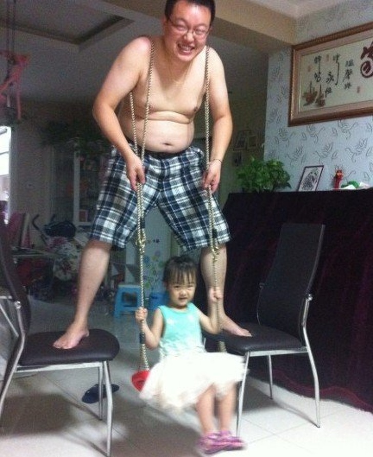 12. Os pequenos queriam ir ao playground, mas papai estava cansadão. Aí, a criatividade falou mais alto