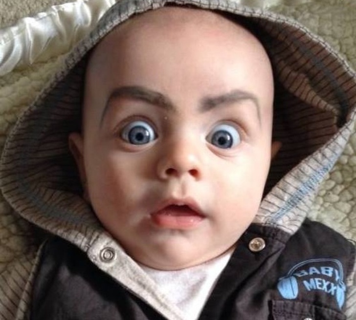 7. “Desenhei umas sobrancelhas no meu filho. Ele se surpreendeu tanto quanto eu, mesmo!”