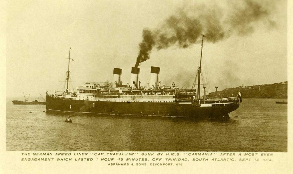 Por exemplo, os britânicos transformaram o navio de passageiros RMS Carmania num navio de guerra disfarçado de navio de passageiros SMS Cap Trafalgar alemão. Assim, eles esperavam não levantar suspeitas. Só que os alemães, por sua vez, também tiveram essa mesma ideia! E, em 14 de setembro de 1914, os britânicos afundaram o verdadeiro SMS Cap Trafalgar, que os alemães haviam disfarçado como o próprio RMS Carmania, para parecer como um navio de passageiros britânicos.