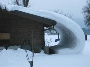 Como será que a neve escorregou do telhado nesse formato?
