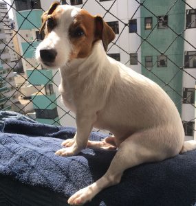 Enquanto tomava sol na janela do apartamento onde mora, a tela de proteção se rompeu e o cachorro caiu, mas surpreendentemente, sobreviveu.