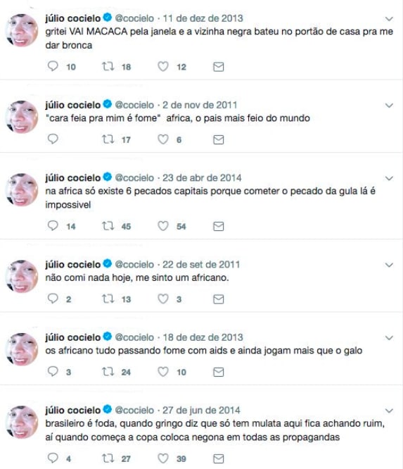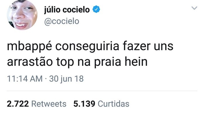 “Mbappé conseguiria fazer uns arrastão top na praia hein”, escreveu Cocielo em seu perfil no Twitter, que tem mais de 7 milhões de seguidores, em sua maioria, crianças e adolescentes. O assunto, claro, repercutiu rapidamente e uma chuva de críticas começaram a aparecer contra o youtuber. Além disso, muitas pessoas começaram a cobrar um posicionamento das marcas que patrocinaram e ainda patrocinam o jovem.