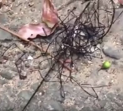 A criatura parece um monte de cabides ou galhos de arame torcidos um ao redor do outro. O choque, no entanto, foi quando o animal começou a se mover, se torcer e se rastejar no chão.