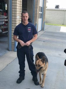 Assim que o viu, Patrick pensou que se tratava de um Leão da Montanha, mas logo que se aproximou do animal, percebeu que era um belo Pastor Alemão. O cachorro estava desidratado e fraco, então Patrick deu água a ele e deixou que repousasse debaixo do caminhão de bombeiros, antes de levá-lo para um abrigo de animais.