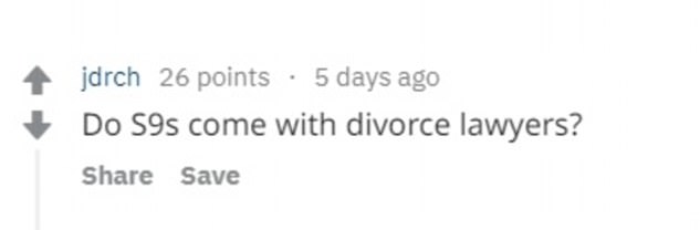“Gostaria de saber quem vai ser preso com fotos suas!”, Disse outra pessoa. “Os S9s vêm com advogados de divórcio?”, Brincou um usuário.
