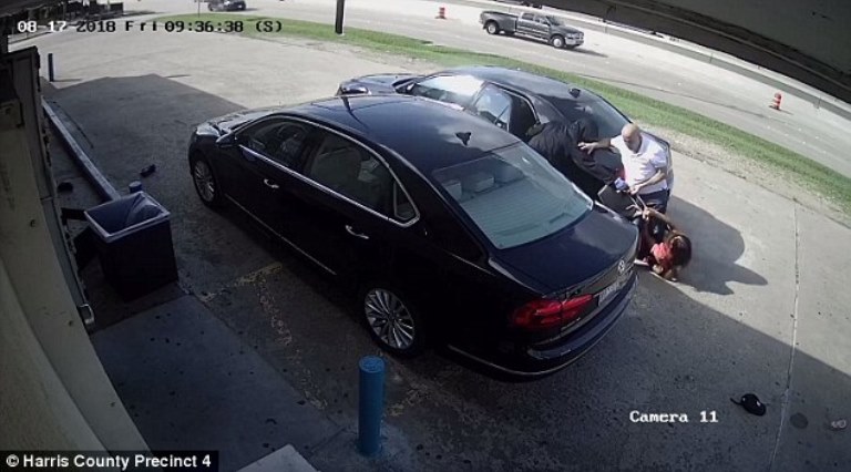 O vídeo, divulgado pelo escritório do condado de Harris County Constable, revelou que um dos homens entrou em um veículo e incidiu sobre a vítima enquanto ela tentava lutar contra os ladrões.