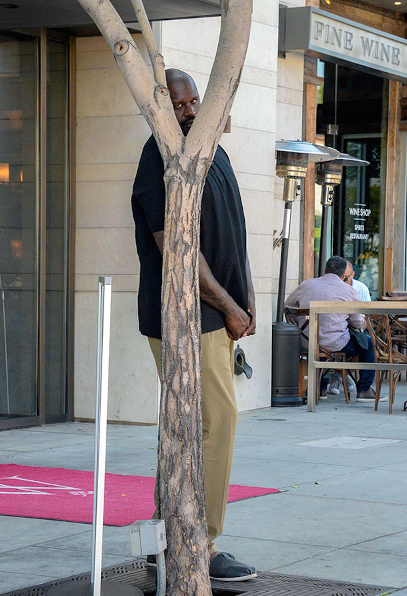 7. Shaquille O’Neal escondido atrás de uma árvore “Você não me vê”
