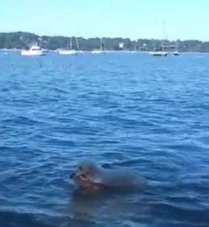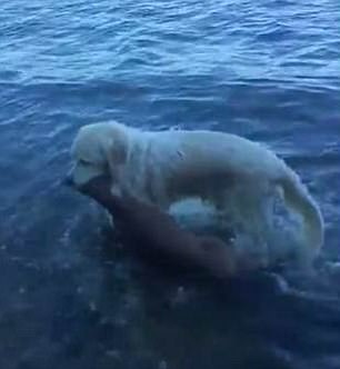 Um cão saiu da água com algo pesado em sua boca, seu dono notou e rapidamente pegou o celular para registrar o momento.