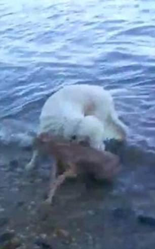 No vídeo, você pode ouvir que Mark diz a Storm “bom menino”, enquanto o cachorro deixa o cervo no chão. Ele não só o salvou do afogamento, como também podemos notar que o cachorrinho estava preocupado que o cervo reagisse.