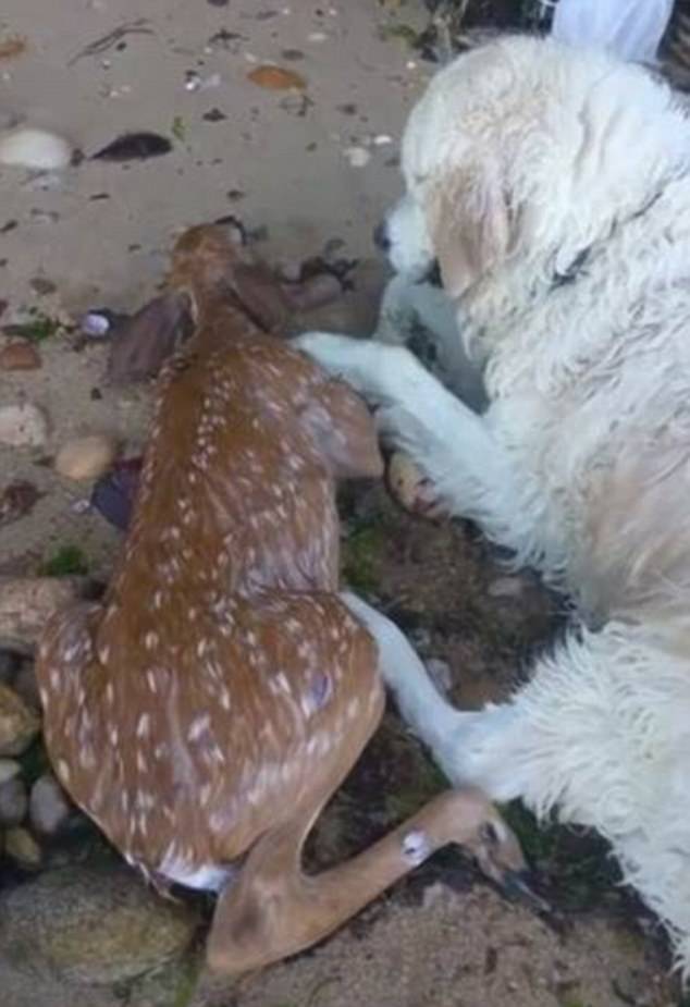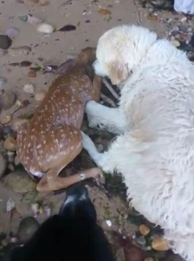 Tudo aconteceu um dia quando um homem chamado Mark Freeley caminhava tranquilamente pela praia com seu amado cachorro Storm, seu golden retriever. Inesperadamente, o cão notou que um cervo lutava para sobreviver na água.