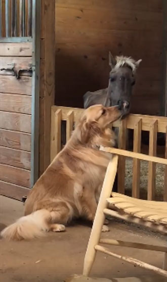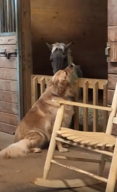 Assista ao vídeo reconfortante de Molly, a Golden, confortando Sammy, o cavalo: