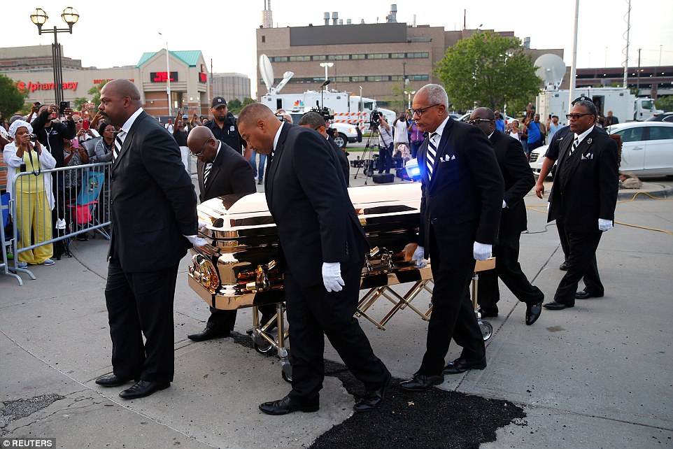 Na manhã de terça-feira, o corpo de Aretha chegou a sua cidade natal, Detroit, Michigan, onde ficou no Museu Charles H. Wright de História Afro-Americana para a exibição pública de dois dias.