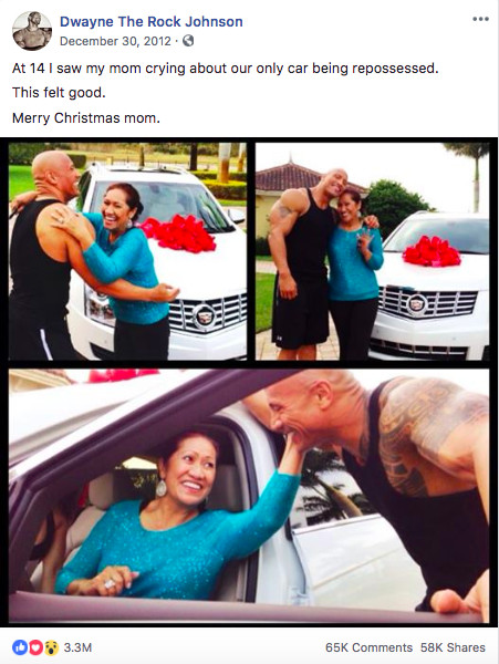 No passado, Dwayne Johnson também deu à sua mãe um carro novo como um agradecimento: