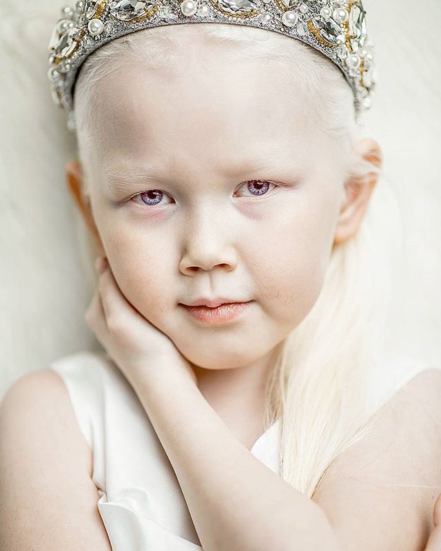 Ela é um grande contraste na família, pois todos os membros têm cabelos escuros e apenas ela nasceu assim: feita de leite (ou de neve)!