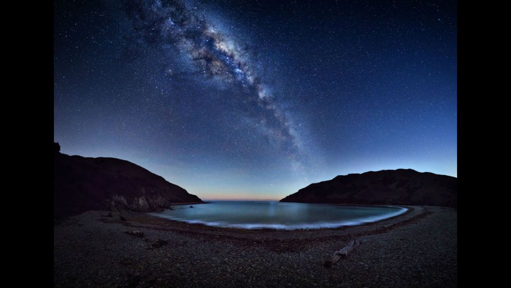 A magnífica Via Láctea, vista de Cable Bay, perto de Nelson, na Nova Zelândia.