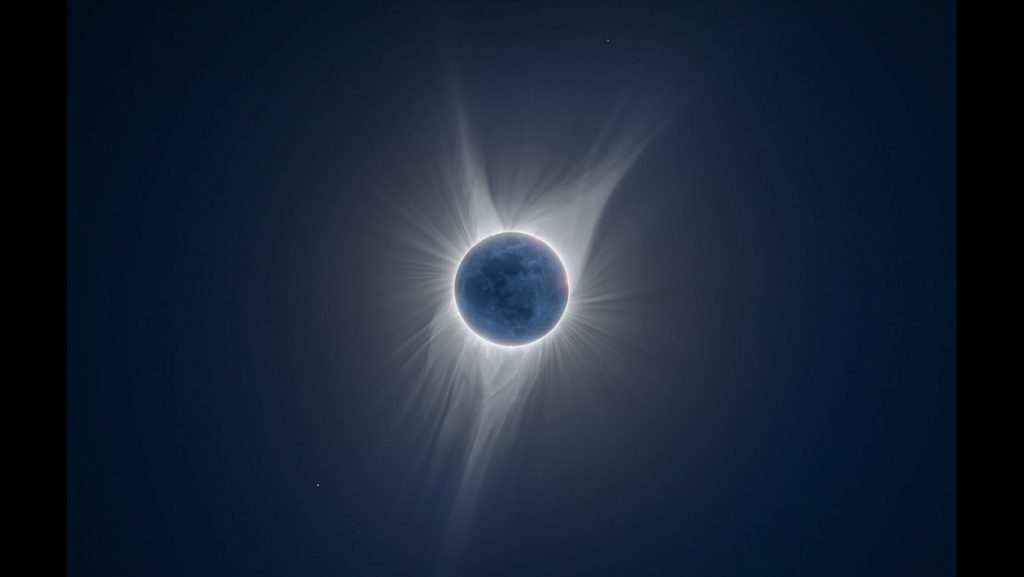 Durante um eclipse solar, você pode ver o que parece ser a fresta do mundo – ou então simplesmente a Lua sendo contrastada pelo brilho da coroa solar.