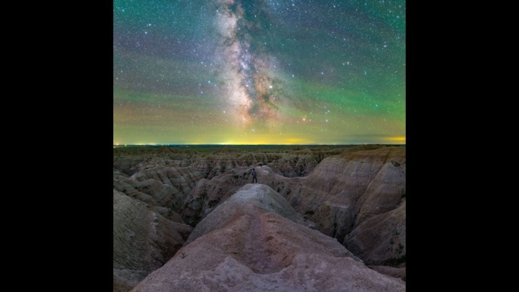 Essa belíssima vista é uma composição de seis fotos capturadas por Jingpeng Liu no Parque Nacional Badlands, na Dakota do Sul.