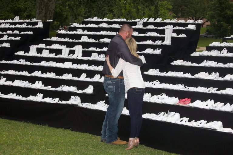 “Os sapatos da nossa filha são os cor-de-rosa que colocamos para representá-la. Eles chamam de sapatos fantasmas. Eu quase posso ver todas as pessoas aqui em pé”, expressou David Mills.