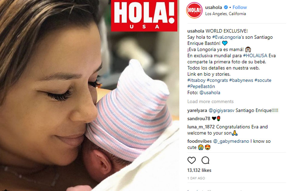 A estrela de Desperate Housewives, Eva Longoria, e seu marido, José Pepe Baston, presidente da Televisa, tiveram o seu primeiro filho, Santiago Enrique Bastón. No dia 19 de junho, ela confirmou a boa notícia para a Hola, nos EUA. Santiago nasceu no Cedars-Sinai Medical Center em Los Angeles e pesava 3kg!