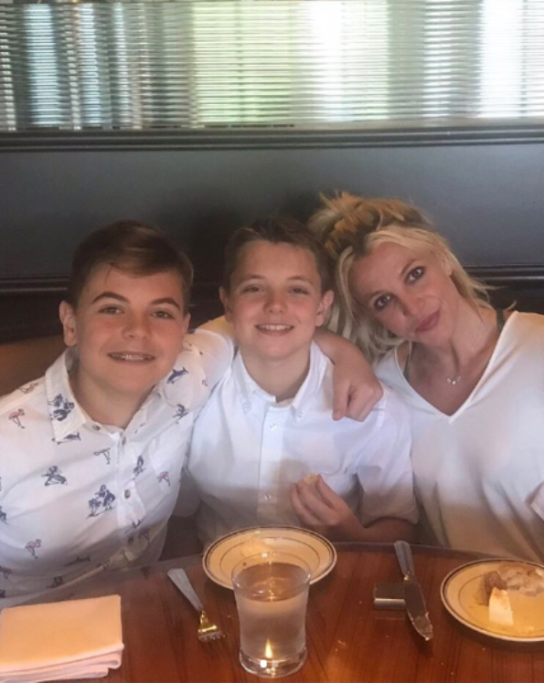 Na quarta-feira, Britney sorriu com orgulho e alegria em uma foto ao lado dos seus dois filhos, e depois postou essa foto nas mídias sociais.
